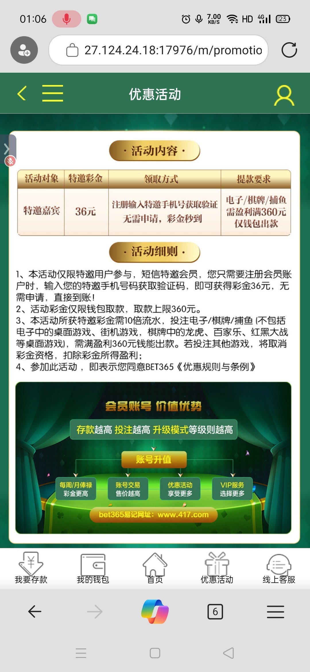 刚登上去看见活动里有个特邀活动 就用另外一个手机号注册 秒38 有手机号的老哥可以试试 没有别中出我 417.com