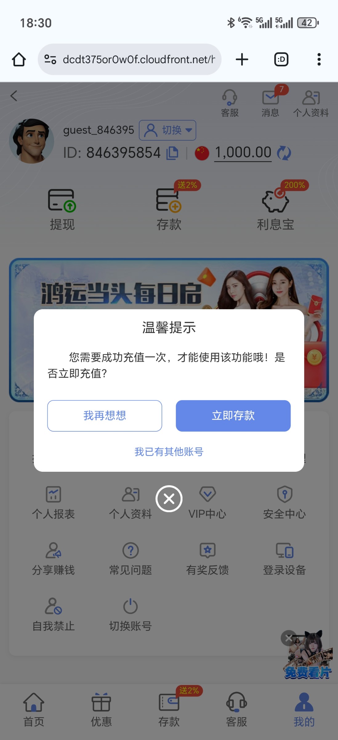 链接进去就有一千 充值才能提现