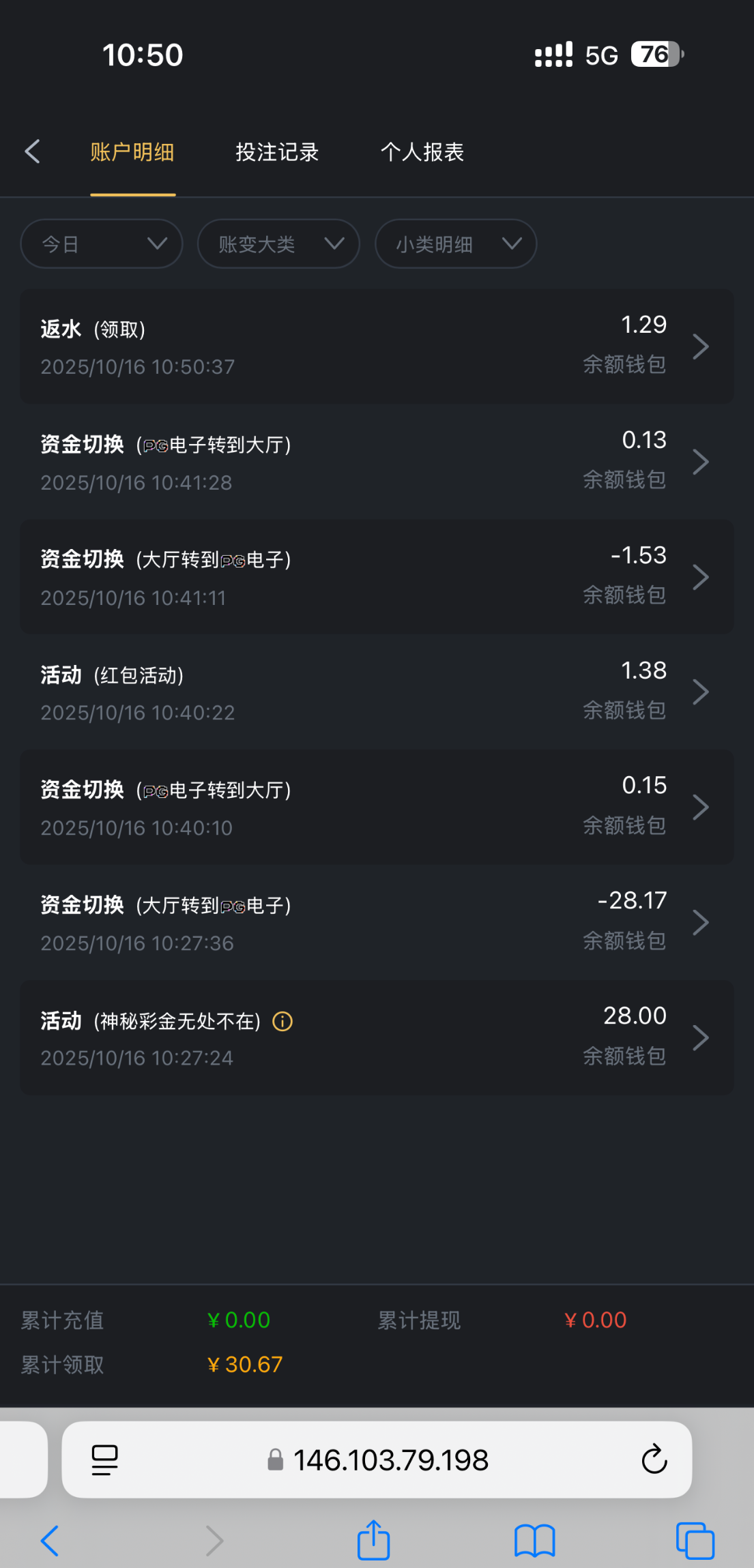 出款情况:自测(