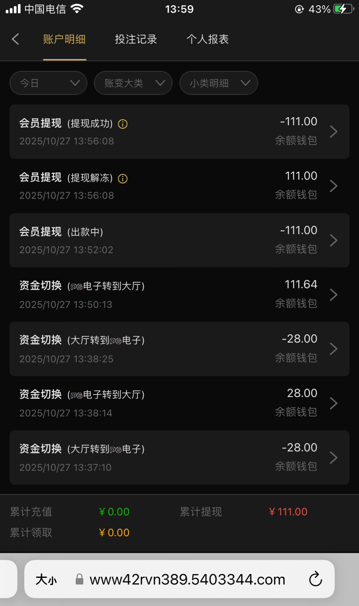 出款情况:自测(
