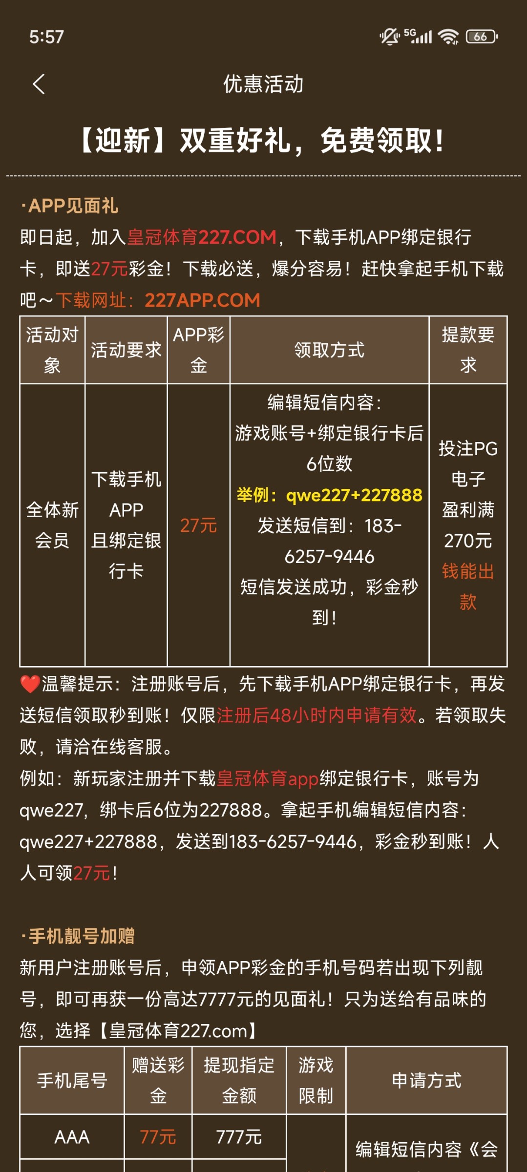 227发短信秒到27,白嫖即可规则具体看图