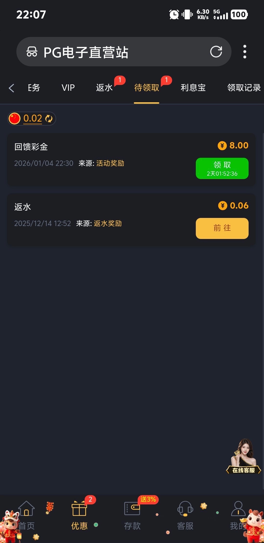 【pg001】回馈彩金