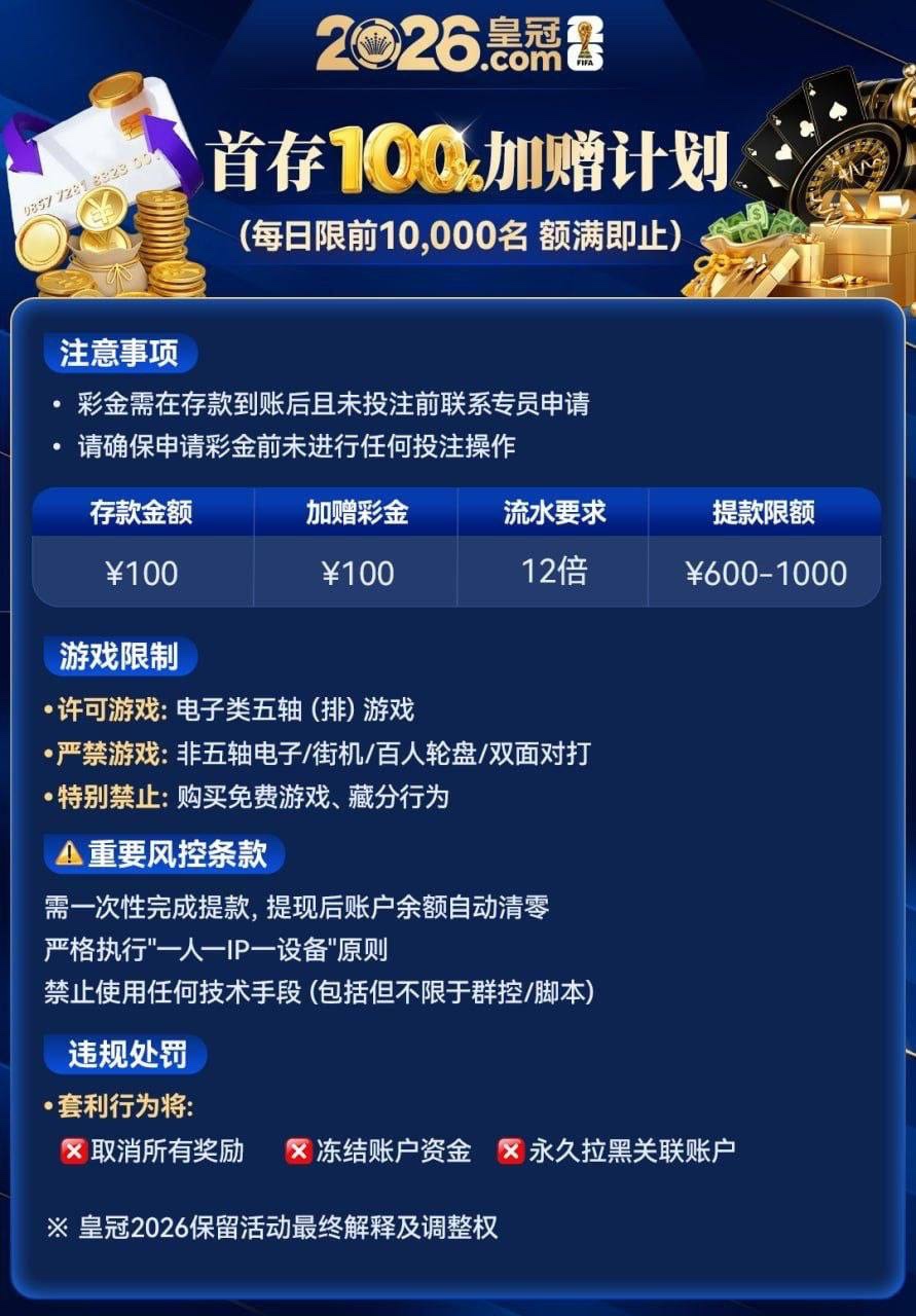 【新皇冠2026】⚜️首存100+100⚜️注册送6-26