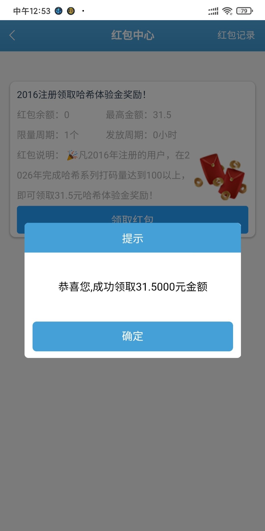 哈希系列体验金最高31.5具体是注册年份,条件要求今年哈希系列打码满一百,前段时间转盘转过高级的可以直接领取了