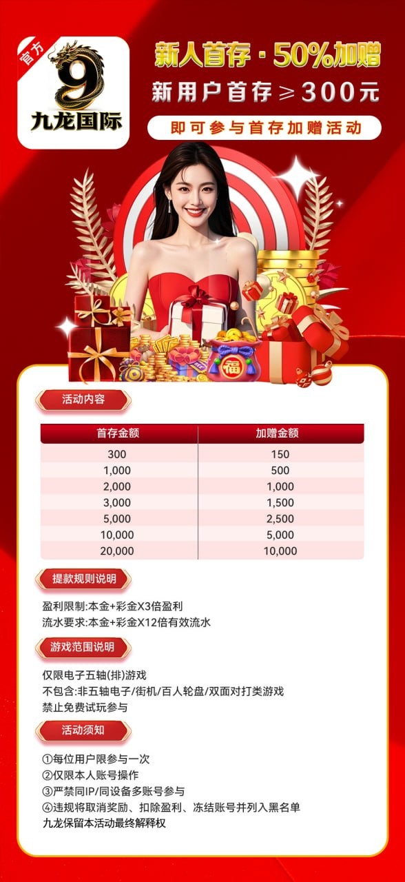 【九龙国际】抽888元现金活动100+100