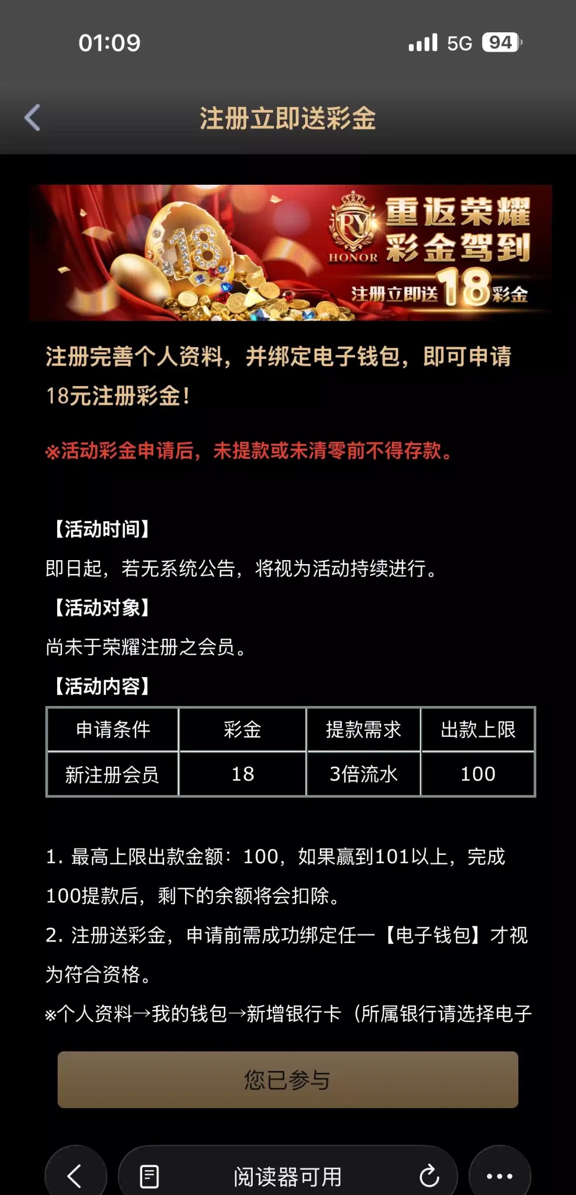 【荣耀】绑定钱包送18